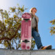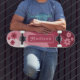 Guay retro 60s 70s diseño vintage floral personalizado de skateboard con arco iris monocromático simple magenta a rosa. Con daisies florales simples y plantillas fáciles de usar con tipografía de groovía personalizado. Pintura original de la artista Catherine Sweetman