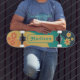 Diseño personalizado de skateboard con franja simple y flores de margarita hippie retro genial de los 60 y 70, vintage. Plantillas fáciles de usar con tipografía genial y groovy personalizada. Arte original de la artista Catherine Sweetman