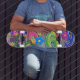 Una impresionante idea de regalo sorprendente para todos los hombres y mujeres patinadores que aprecian empujar el patinaje sobre el sobre y a las estrellas modernas. La hermosa mezcla colorida de colores y texto en este sorprendente skateboard hace que todo el entretenimiento al aire libre cobre vida