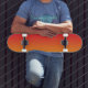 Cubierta roja y anaranjada del tablero del patín de Ombre