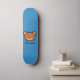 Cara de osito de peluche marrón con las mejillas rosadas ruidosas, orejas rosas y una cara feliz, sobre un fondo azul. Una plantilla a continuación para agregar su nombre a personalizar.
