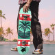 Skateboard Palm Tree Turtle Silhouette Red Green Initial