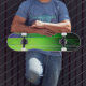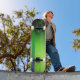 Skateboard Panel Holográfico de Ciencia Ficción Verde y Negro