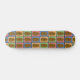 Patineta divertida al estilo del arte pop con un patrón de rectángulos de diferentes colores cada uno con una patata marrón feliz en el medio.