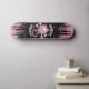 Cráneo rosado lindo y bandera pirata con los corazones y el texto FEMENINO del CRÁNEO. ¡Esto es un monopatín lindo que cualquier chica amará!