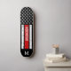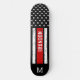Delgado Skateboard de Línea Roja - Bandera estadounidense en colores de bandera de bomberos, diseño angustiado . Personaliza este patinador con monograma inicial. Esta cubierta personalizada para patinadores de bomberos es perfecta para bomberos, bomberos, graduados de bomberos y regalos de retiro. DERECHOS RESERVADOS © 2020 Judy Burrows, Black Dog Art - Todos los derechos reservados. Patinador Patriótico Delgado de la Línea Roja Personalizado