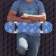 Skateboard Patrón de copos de nieve, copos de nieve blancos,