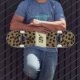 Este patrón de impresión animal negra y marrón tiene puntos negros sobre un fondo en tonos marrones. Este divertido diseño de moda está inspirado en el patrón de piel de chita.