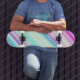 Skateboard Patrón de rayas rosadas Verde azuladas púrpura de