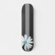 Esta patineta femenina de bonito tiene una gran margarita turquesa y blanca sobre un fondo de rayas negras y plateadas. ¡Calle inteligente, urbana, divertida y genial! Disponible en otros estilos y combinaciones de colores. ¿Quieres algo único solo para ti? Contáctame y diseñaré algo específico para ti sin cargo adicional. info@creacious.com