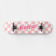 ¡A tu hija le encantará esta patineta de Jessica Amber! Presenta un diseño de tablero de ajedrez onado rosa y blanco pastel. El texto del centro está en una fuente retro rosa con una sombra de caída. Editarlo para agregar el nombre del destinatario (los nombres cortos funcionan mejor). También puede cambiar el color de todas las partes en el editor de Zazzle. Un gran regalo de cumpleaños para tu hija adolescente. ⭐ Para más equipo de patinaje sobre el año 2000, visita mi tienda Zazzle.com/The_Pink_Pixie ⭐ Para pedidos personalizados, envíame un mensaje a Zazzle