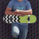 Skateboard Patrón de zigzag negro y blanco, chevron, verde