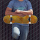 Skateboard Patrón otoñal con hojas de arce en caída y bokeh