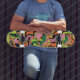 Patinaje sobre el patrón retro de hongos psicodélicos