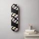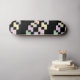 Bloques geométricos rosados, verdes y amarillos sobre el diseño de patrones de fondo negro.