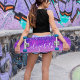 Patineta femenina personalizada con purpurina falso morado y rosa caliente goteando sobre un fondo morado. Puede agregar su nombre en un guión blanco moderno.