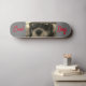 ¡Te encantará esta patineta fresca! Foto del perro Shih Tzu luce lindo y fresco con gafas de sol. Fondo gris con las palabras Perro Guay en rojo.