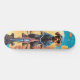Un diseño caprichoso de un perro con gafas de sol montando una bicicleta en la ciudad.
