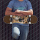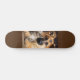 La patineta tiene un diseño peculiar, representando a un perro y un gato juntos, simbolizando su amistad. La imagen en la patineta muestra a un perro y un gato demostrando su buena relación como grandes amigos. Este diseño refleja la armonía entre dos animales que comúnmente se perciben como opuestos o rivales, transmitiendo un mensaje de amistad y colaboración.