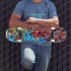 Este patinaje presenta un diseño de pintura mural de grafiti. ¡Los dibujos de colores vivos son un éxito! Disfrute de su nueva tabla de patinaje mural de graffiti.