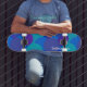El diseño de los Big Blue Marbles de esta cubierta de patinaje tiene varios tamaños de círculos en tonos azules. Edita el nombre actual, "Sebastian" para añadir tu propio nombre u otro texto.