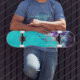 Skateboard Placas púrpura, azul y madera Verde azulada y band