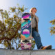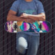 Bella tabla de skate con diseño de planetas y nubes en el universo que causará sensación a tus amigos fanáticos del skate. Puede ser un excelente presente a un familiar o a un querido amigo en su fiesta de cumpleaños.