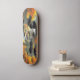 Diseño artístico de las rocas, huellas de pies, arena y piscinas de rocas en la playa al atardecer.