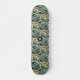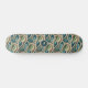 This tropical theme vintage look skateboard will remind you of the beach, surf, and sand. Swirls of Polynesian waves reveal tropical blue and geen jewel tones of the South Pacific and palm trees in a retro style, remniscent of beach-inspired ethnic art or tattoos. Your initial appears in a teal green circle, with a double border in a sandy tan color.