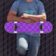 Dibujo de skateboard morado de la artista Roseanne Jones.