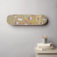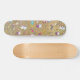 Patineta purpurina unicornio. Antecedentes de purpurina dorado y patineta de patrón de unicornio.