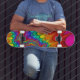 Resumen colorido Ya sea que estés haciendo moldes en la media tubería o en los kickflips en la calle, esta competencia en forma de tablero tiene un pop supremo! Nuestras tablas son fabricadas con madera de arce resistente de la mejor calidad e impresas con un método exclusivo para hacer que tu skate sea el mejor del mundo entero.