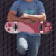 Cool retro 60s 70s vintage floral personalized skateboard design with simple magenta to pink monochromatic rainbow wave. With simple daisy pattern giving a cool groovy vibe. Original artwork by artist Catherine Sweetman