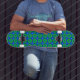 Skateboard Retro Margeriten u. Sterne Artdeco en grün blau