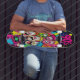 No te pierdas la época dorada de los personalizados de los años 90, con esta terraza de patinaje salvaje y colorida, con un caótico mashup de toneles de inspiración retro. Con colores llamativos, personajes iracundos y vibraciones nostálgicas, este diseño capta la diversión, la energía y el azar de los clásicos de la mañana del sábado. Tanto si eres un patinador que creció en animación de la vieja escuela como si te gusta la estética personalizado vintage, este tablero es una perfecta mezcla de estilo callejero y nostalgia. Viajar con actitud o colgarlo como una declaración —de cualquier manera, ¡es imprescindible para los verdaderos niños de los 90 y fans de la animación!