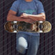 Skateboard Rey Mono Chino con Mirada Seria Decisiva