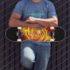 Rosa en llamas del fuego y la llama sobre fondo negro.