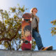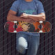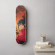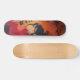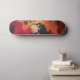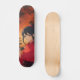 Skateboard de dessins animés japonais d'une jeune samouraï lors d'une bataille avec un temple enflammé.
