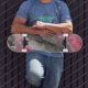 Pintura original de la acuarela de Sandra Gale, con un diseño acuoso y abstracto de pinturas de color rojo escarlata y gris azulado que se mezclan para crear esta combinación de colores divertida y rica, aunque suave. Diseño perfecto para patinetas, leggings, mantas y almohadas, para una decoración de arte original espectacular y a la vez única.