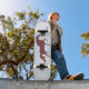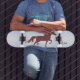 Skateboard Silueta elegante de caballo marrón sobre azul ciel
