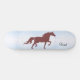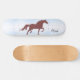 Elegante silueta de caballo marrón y caligrafía en el degradado azul cielo claro Skateboard. El texto se puede personalizar.