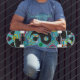 mandala negra y azul decorativa con el símbolo de yang del yin en el centro de un círculo con formas geométricas modernas dentro de los círculos incluyendo triángulos y semi-círculos. diseño digital negro y azul del arte de un símbolo de yang del yin en negro y azul.