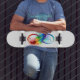 Skateboard Símbolo infinito con plumas arcoiris