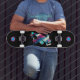 Silueta multicolor de patineta hembra con salpicadura de pintura. Para gales deportivos que adoran patinar. Inspirar y animar a los chicas a saber que pueden hacer cualquier cosa.