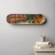 S spooky scarecrow wearing an orange hat and plaid shirt stands ominously. its skeletal face adds a chilling touch to the autumn atmosphere.