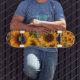 Un primer plano en un campo de girasoles. Hermoso diseño para chicas florales, amantes de la naturaleza y aficionados a la agricultura.