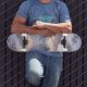 Skateboard Sunrise de acuarela - Lago Serene Misty Mountain