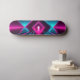 Hit the concrete jungle with unparalleled futuristic speed using this incredible synthwave skateboard deck. The long, horizontal format of the board is the absolute perfect canvas for this breathtaking perspective of a virtual reality tunnel. As you ride, the highly detailed glowing magenta and cyan pyramids and the mirror-like reflections on the dark floor stretch across the deck, creating an incredible illusion of hurtling straight through a digital dimension.