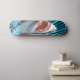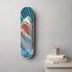 Un gran tiburón blanco que estalla del agua con ella es mandíbulas sangrientos abiertos de par en par. Arte fresco del vector para el skateboarding del verano.