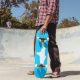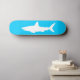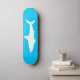 La forma de un tiburón blanco sobre un fondo azul acuático.